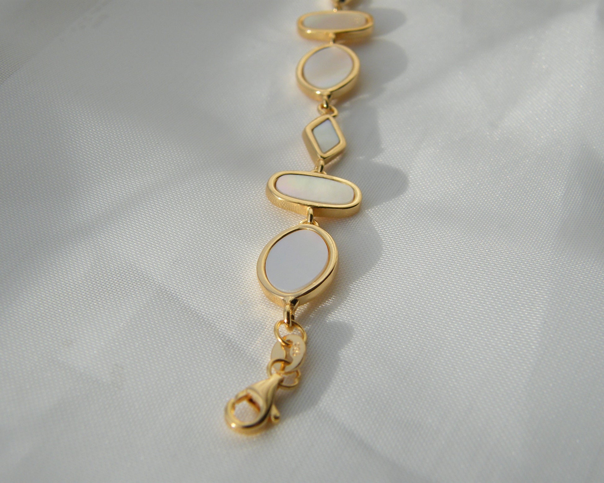 Delicate, graceful, and effortlessly chic — the Aurora Cascade Bracelet brings the soft luminosity of mother of pearl to your wrist. Its trio-inspired motif echoes the signature shapes of the Aurora Necklace and Earrings, creating a beautifully cohesive set.