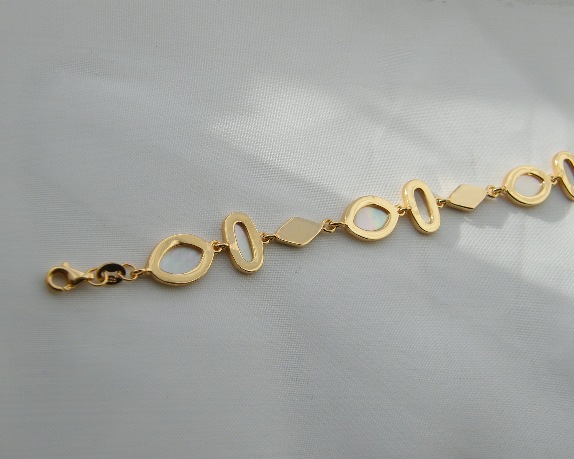 Finished in 18ct gold vermeil over 925 sterling silver with a durable e-coating, this bracelet blends modern geometry with classic elegance, making it the perfect gift or keepsake.