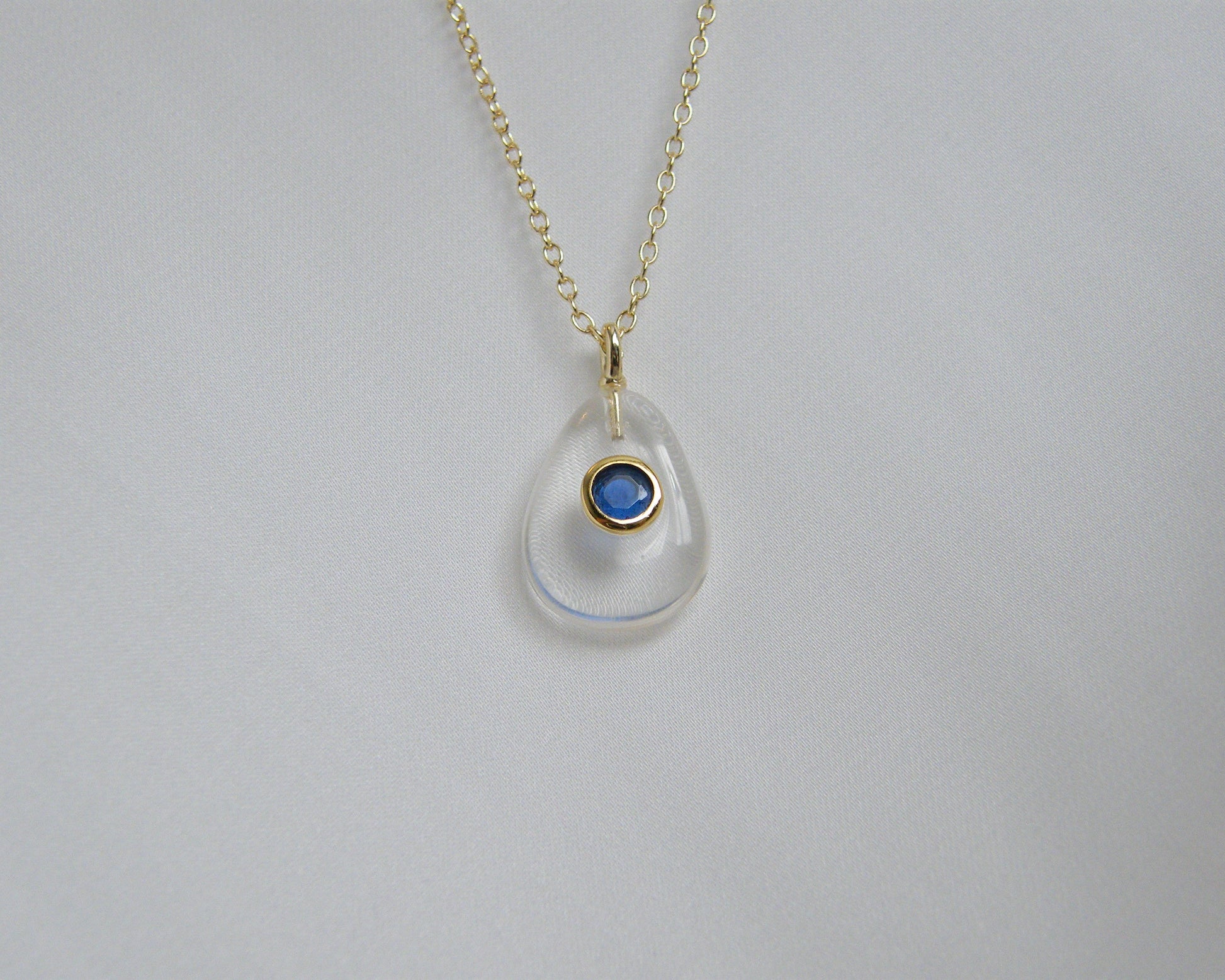 Elegant and versatile, this necklace pairs luminous clear quartz with a deep iolite centre, creating a striking balance of light and depth. Crafted in 925 sterling silver with a 14ct gold vermeil finish, it features an e-coating for lasting wear and is hypoallergenic for everyday comfort. The 40cm chain with 5cm extender makes it ideal for layering or wearing solo.