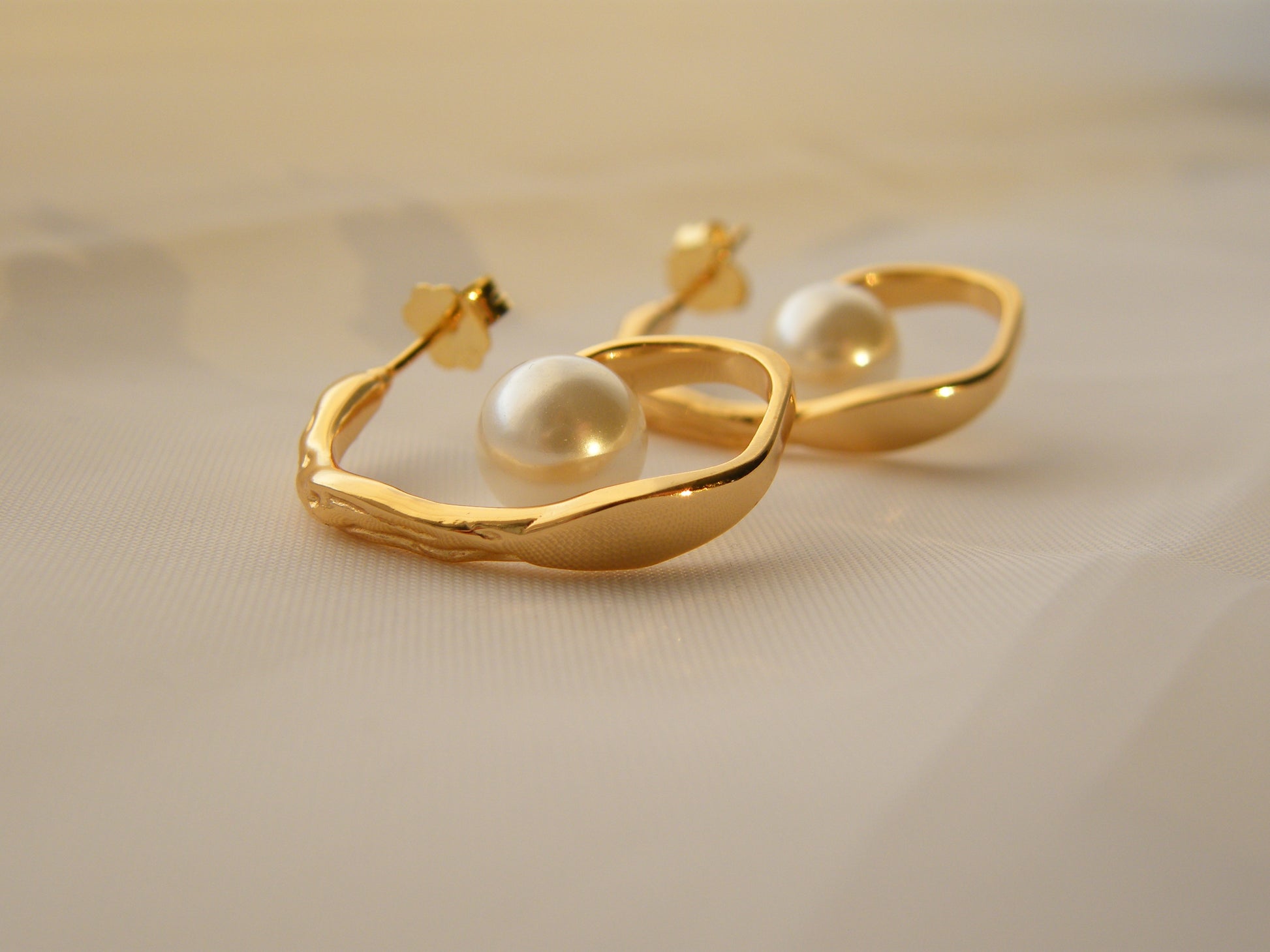 Sculptural, modern, and effortlessly striking — the Muse Pearl Hoops are designed to intrigue. Crafted from 925 sterling silver with 18ct gold vermeil and finished with an e-coating for long-lasting shine, these earrings feature an abstract, molten-inspired hoop encircling a luminous pearl-like accent.