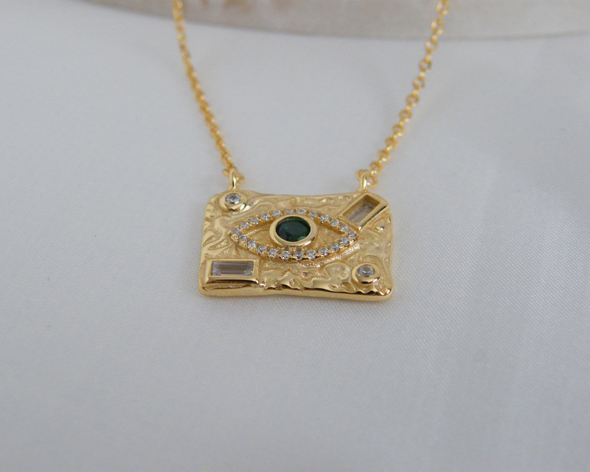 A symbol of intuition, protection, and quiet strength — the Enchanté Pendant Necklace captures timeless elegance with a modern edge. Designed in the shape of an artisanal letter seal, it features an engraved evil eye motif at its heart — an ancient emblem said to ward off negativity and invite clarity.