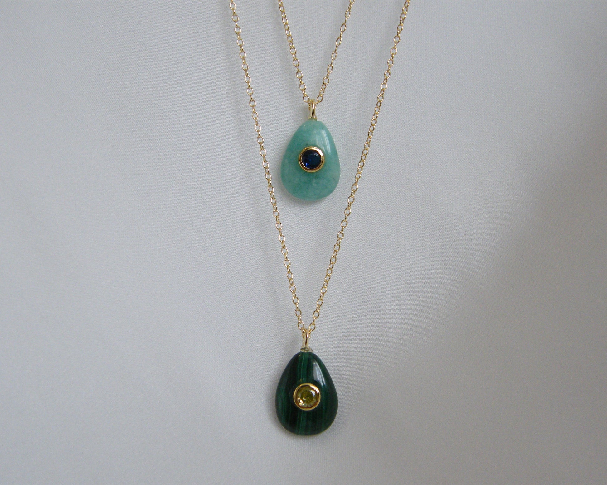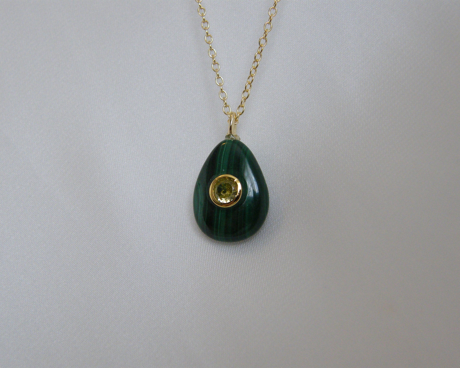 A striking union of colour and meaning, this necklace pairs deep green malachite with a vibrant peridot centre. Set in 925 sterling silver with a 14ct gold vermeil finish and a protective e-coating, it’s designed to last while bringing a touch of modern luxury to the everyday. The 40cm chain with 5cm extender makes it perfect for layering or wearing as a standalone statement.