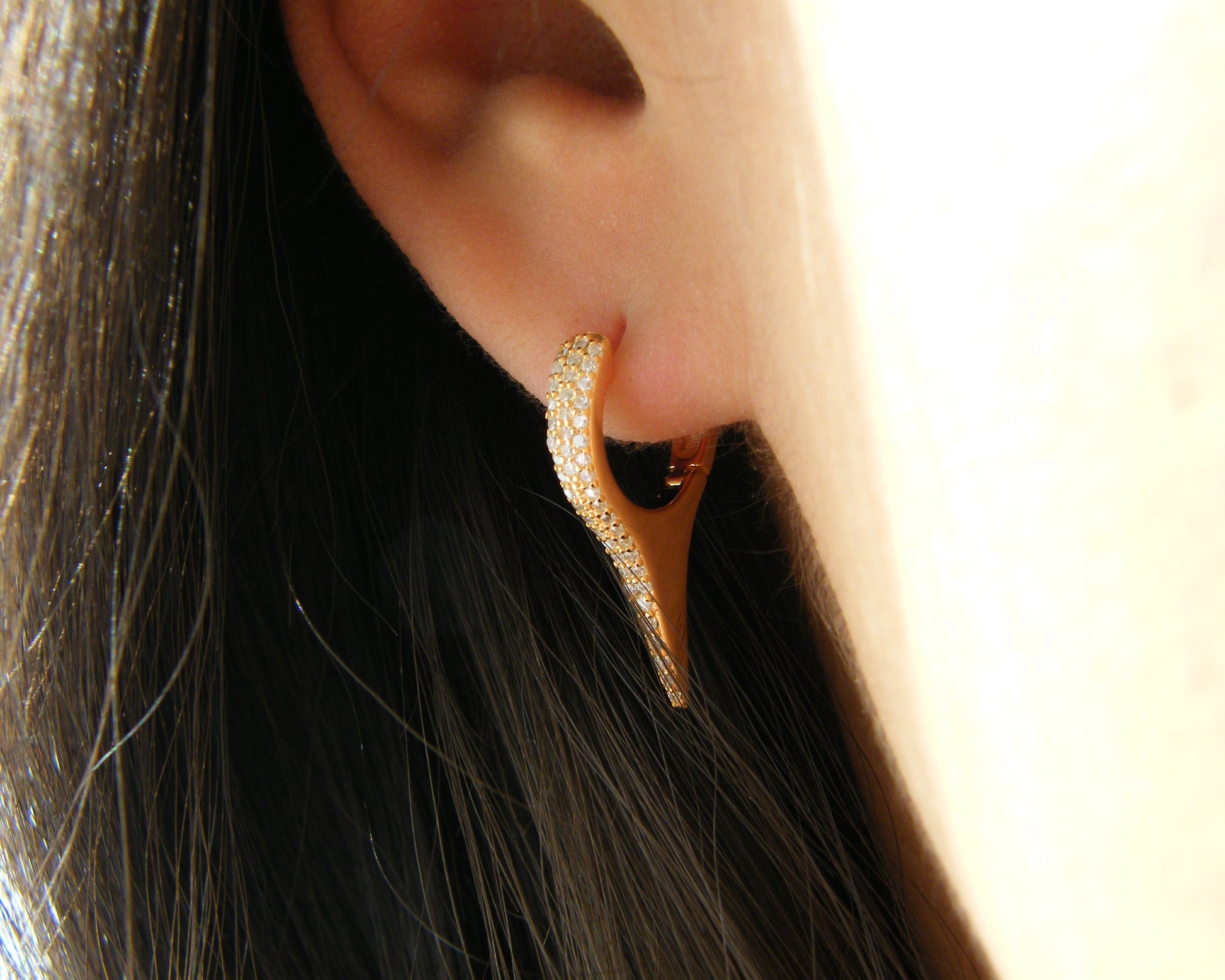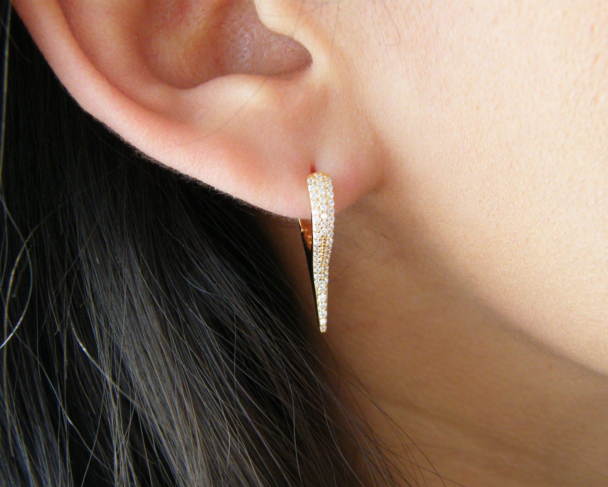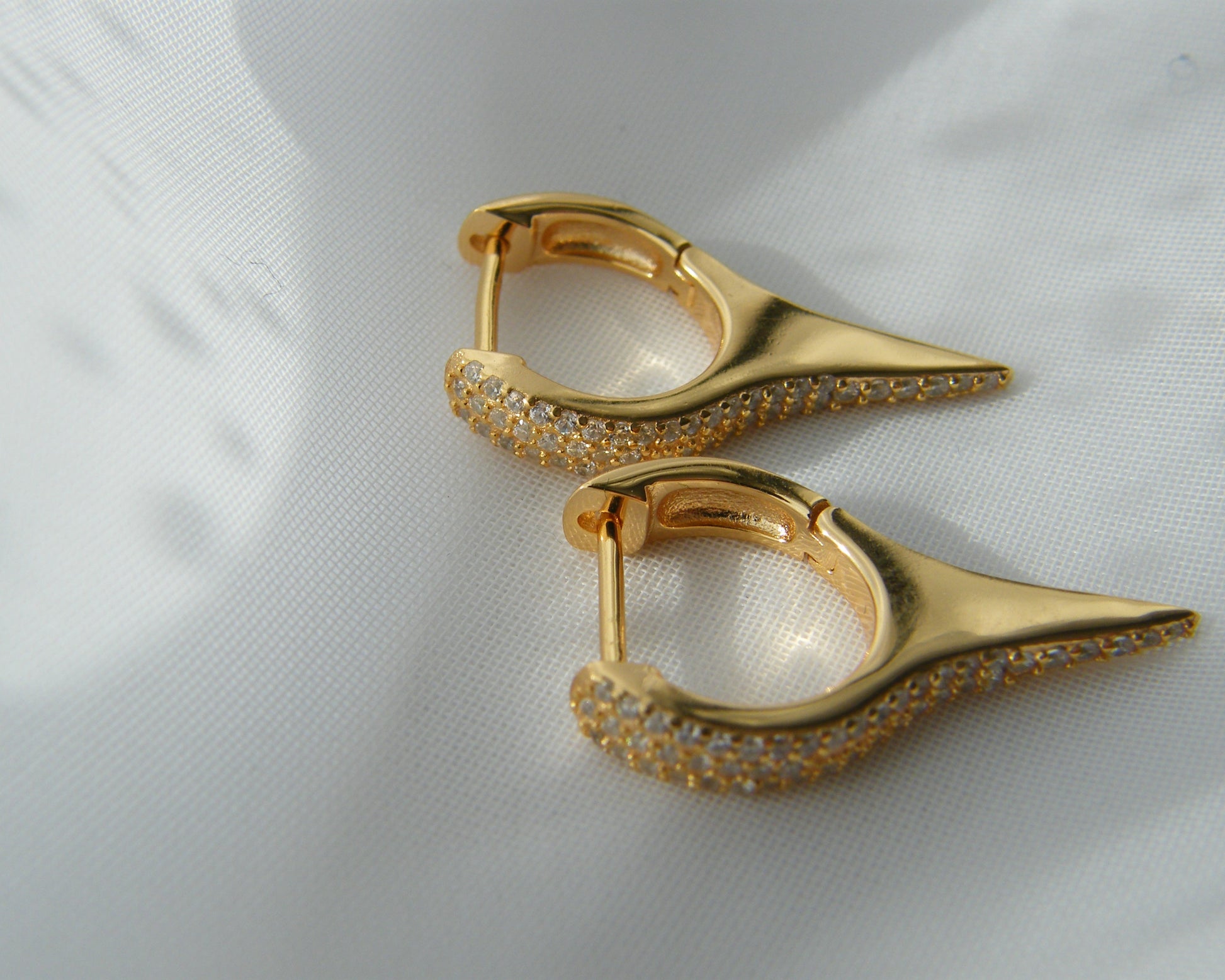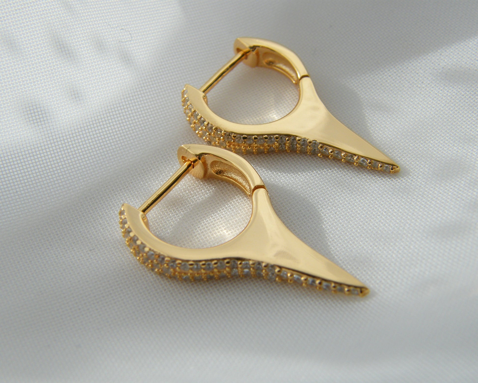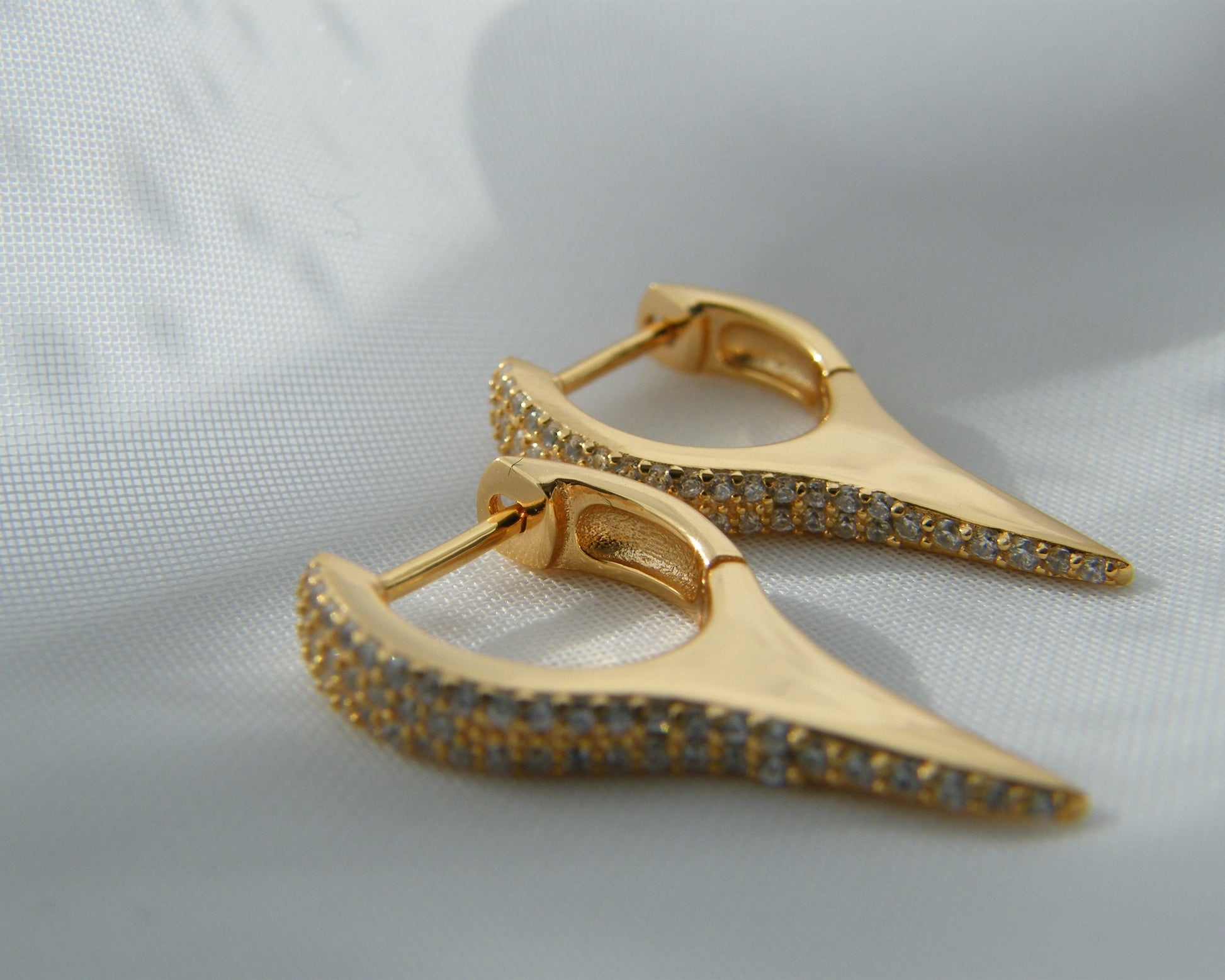 A sleek pointed drop adds a contemporary edge, while delicate pavé cubic zirconia tracing the inner curve brings subtle sparkle with every turn. Lightweight yet statement-worthy, they elevate everything from minimal daytime looks to night-out styling.
